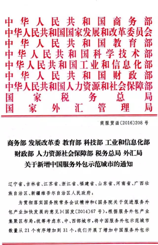 转发:关于新增中国服务外包示范城市的通知