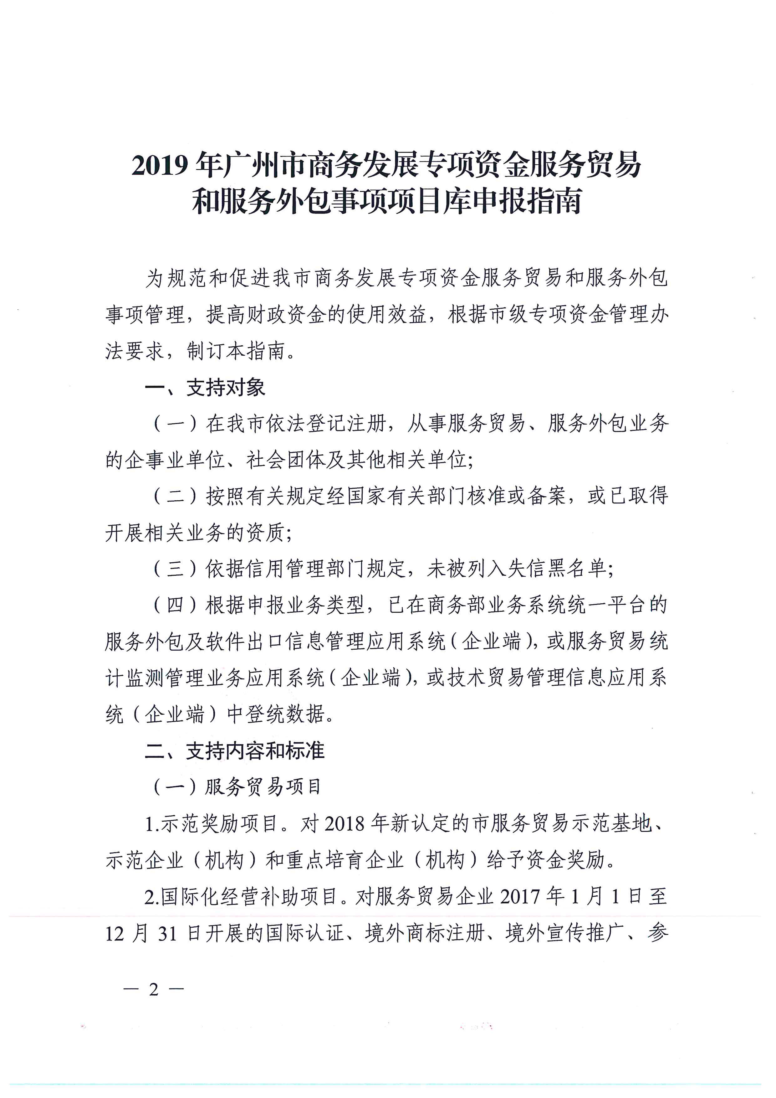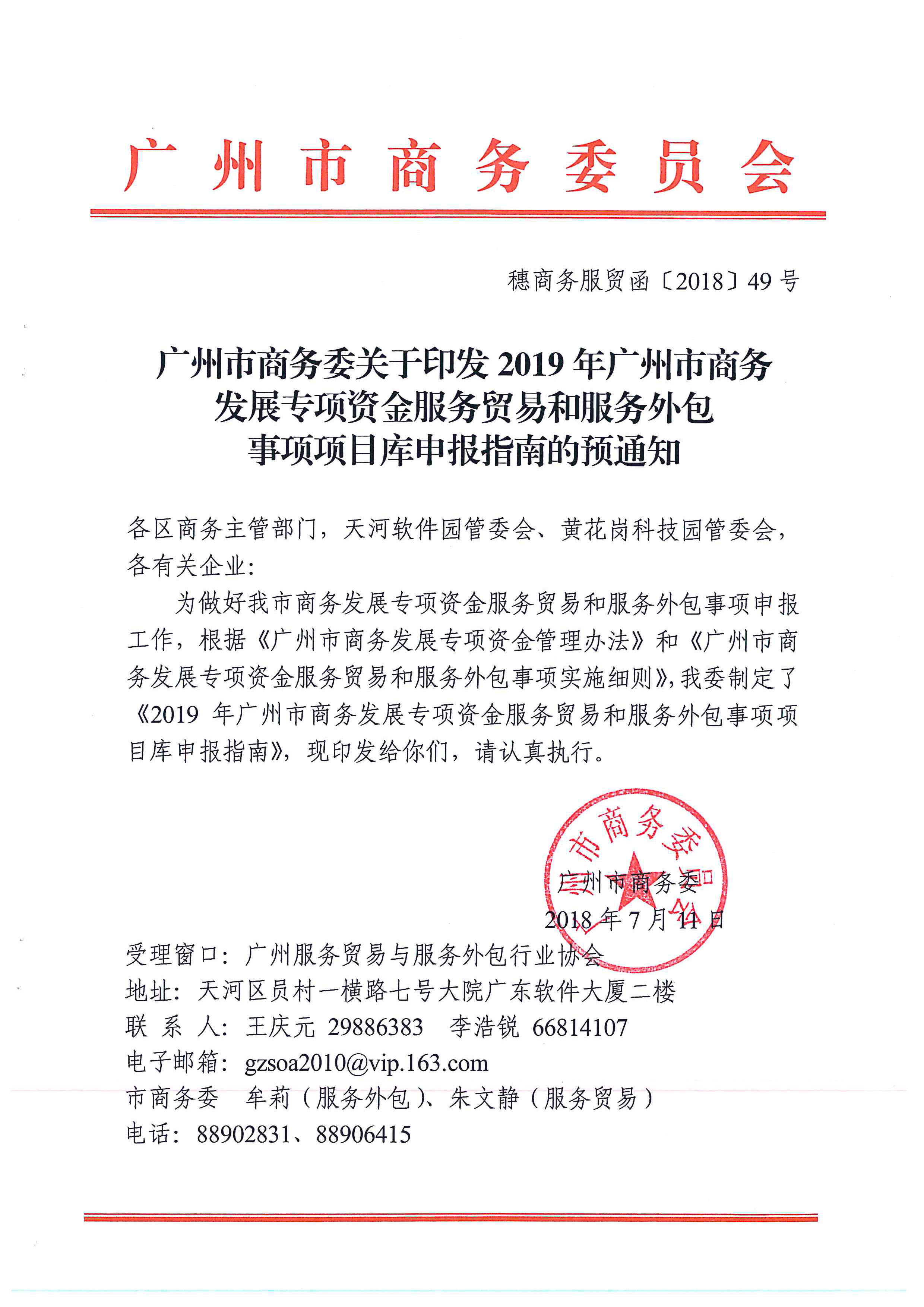 转发 广州市商务委关于印发2019年广州市商务发展专项资金服务贸易和服务外包事项项目库申报指南的通知