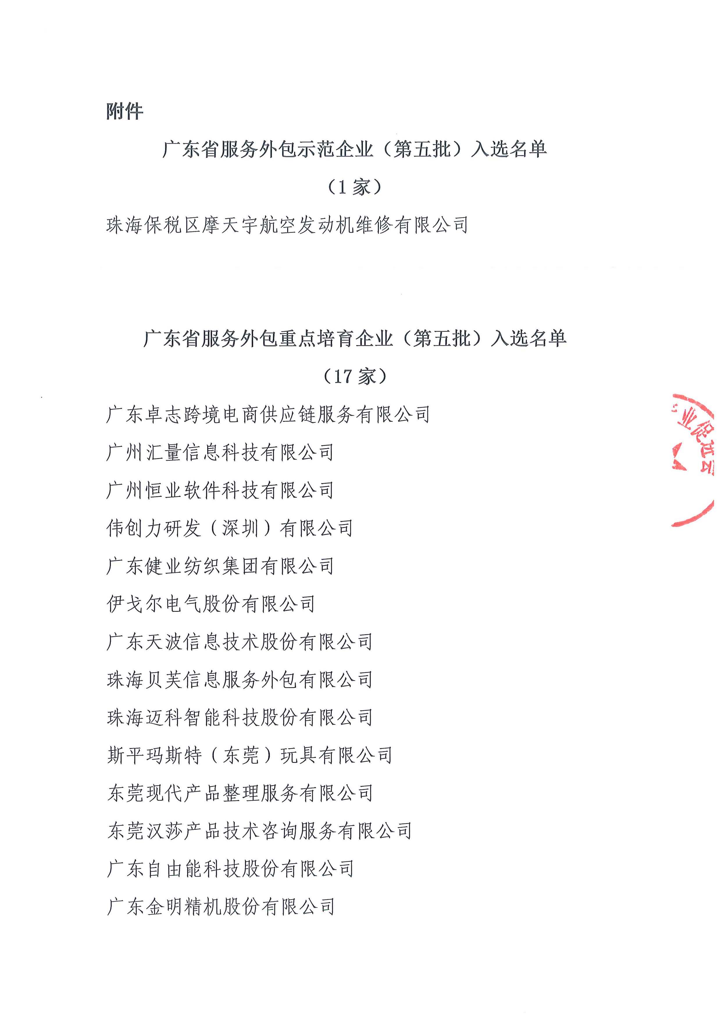 转发 关于第五批广东省服务外包示范企业和重点培育企业名单的公示