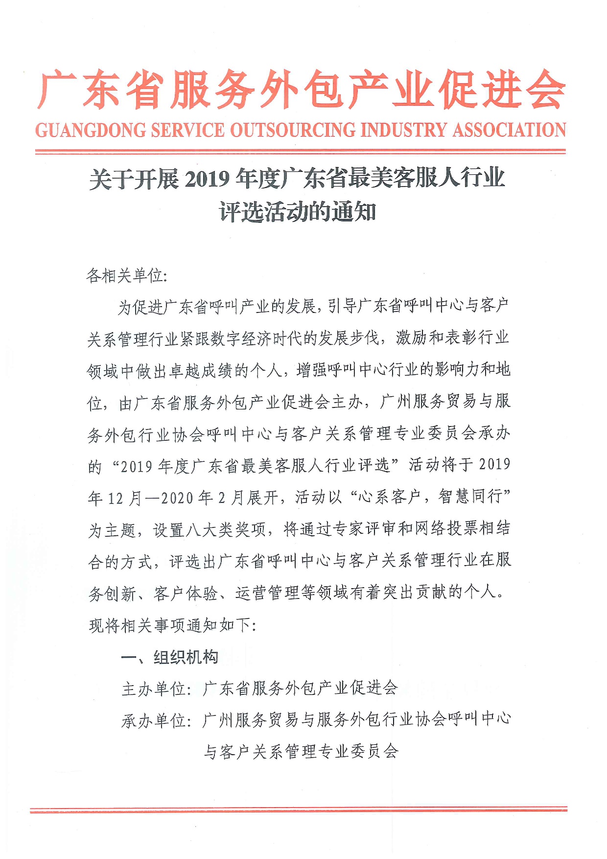 转发 关于开展2019年度广东省最美客服人行业评选活动的通知