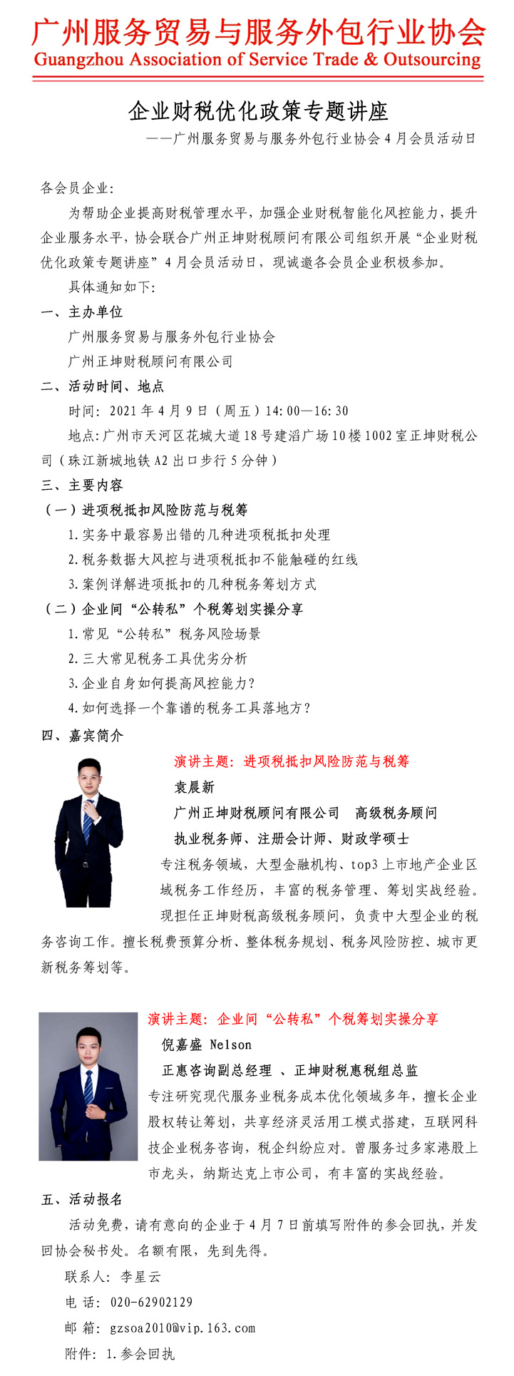 企业财税优化政策专题讲座 ——广州服务贸易与服务外包行业协会4月会员活动日