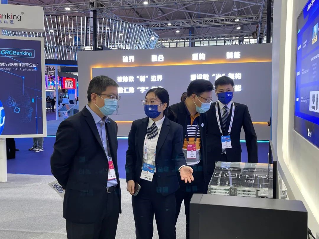 近年来,广电运通逐步改变以金融自助设备为主的单一产业模式,面向银行及泛金融行业数字化升级趋势,创新落地多个智慧网点标杆案例。数博会上展出的银行数字化转型全栈式解决方案,正是基于VR/AR/MR、5G、区块链、物联网、大数据、云计算等技术,为客户提供高柜服务区、理财交流区、互动营销区、智能交易区、智慧迎宾区、24h自助区六大区域场景数字化升级改造服务,打造智慧预约、智慧迎宾、智慧展示、精准营销、智慧交易、智慧理财、智慧评价、智慧运营、智慧安全等场景应用。在金融科技业务领域,广电运通还展出了银行数字化转型整体解决方案,以人工智能、大数据等技术赋能传统产业升级。
