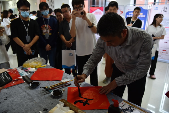 活动现场还设置了几个特色摊位,分别是迎校庆二十周年“我·书·故事”祝福墙活动、图书馆知识有奖问答、读者协会组织开展的“书海寻宝”活动、书法协会的现场写“福”和优秀书法作品展,大家积极参与其中。同学们纷纷表示,图书馆的数字资源推广活动让我们在学中玩,在收获知识的同时也获得了奖品,现场推广活动受到了广大师生读者的欢迎和好评。