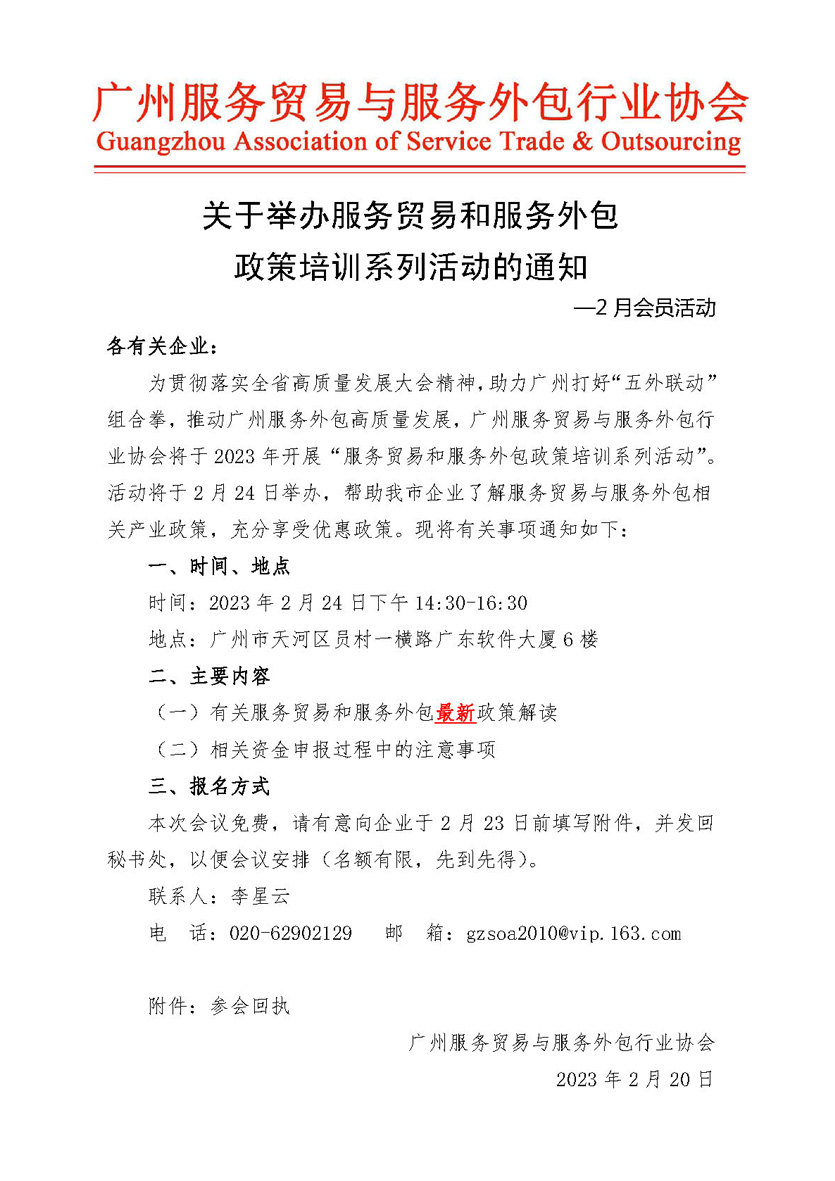关于举办服务贸易和服务外包政策培训系列活动的通知